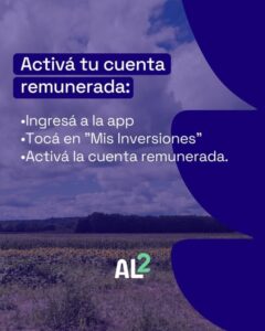 Hacelo directamente desde tu cuenta remunerada. 📲 La activás desde la app y empezás a generar rendimientos todos los días. Es simple, seguro y 100% digital. 💸 Si usás AL2, hacé que tu saldo también te devuelva un beneficio real. Comparte: